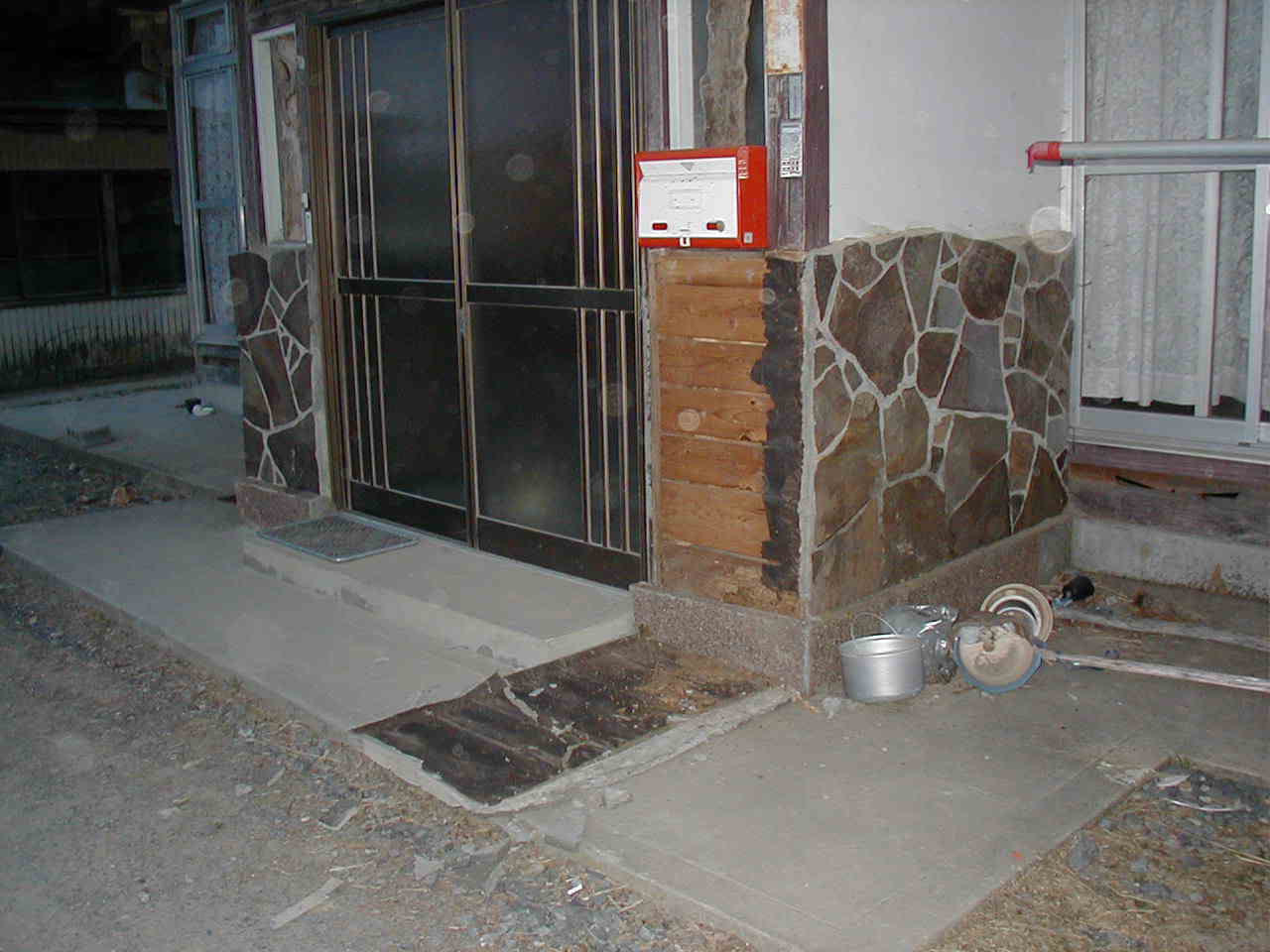 | 今日は、歴史に残る1日となりました。夕方6時25分頃発生した地震。室根村では震度6弱の揺れを観測。地震発生当時私とカミさんは牛小屋で仕事をしていました。突然もの凄い揺れを感じ、急いで子供達を家の中から外へ連れ出しました。するとなんと家が右へ左へすごい勢いで揺れているのです。実際の揺れは30秒ぐらいかもしれませんが、その時はすごく長い時間5分、10分続いている様に、感じました。今でも地響きとともに、余震が来ます。マジで恐いです。 |
