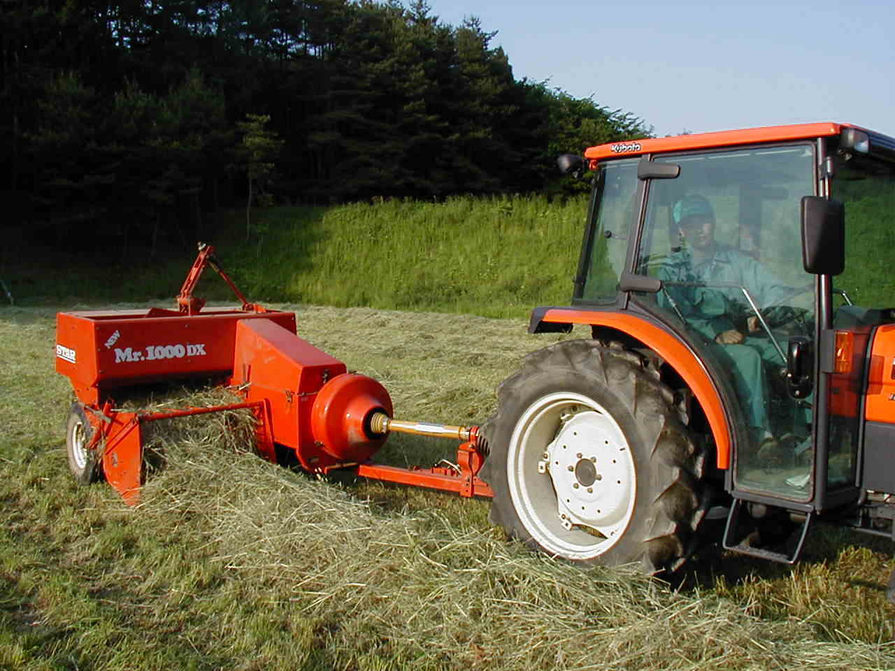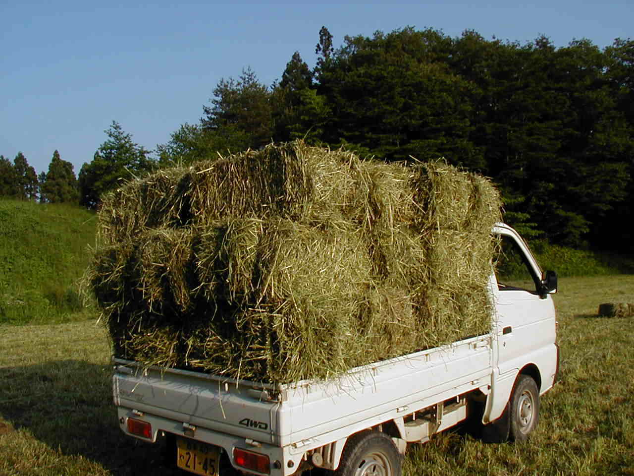 今日は,牧草地の草を梱包する作業をしました。ここ数日のいい天気で、刈っておいた牧草もいい具合に乾燥しました。刈った牧草を雨に当るとその栄養価値は半減すると言われています。今回は全く雨に当てず梱包する事が出来ました。我家の牛達もさぞ大喜びする事でしょう。牧草地の草刈は2週間程続きます。しばらくは気象予報士の如く天気図を見ながらの作業が続きます。 |