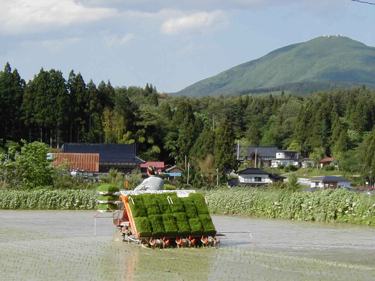 | 田植えが始まりました。 今年は、苗も機械も天気も順調です。 それでも、作業する面積が増えたので、 今月いっぱいかかる見込みです。 |