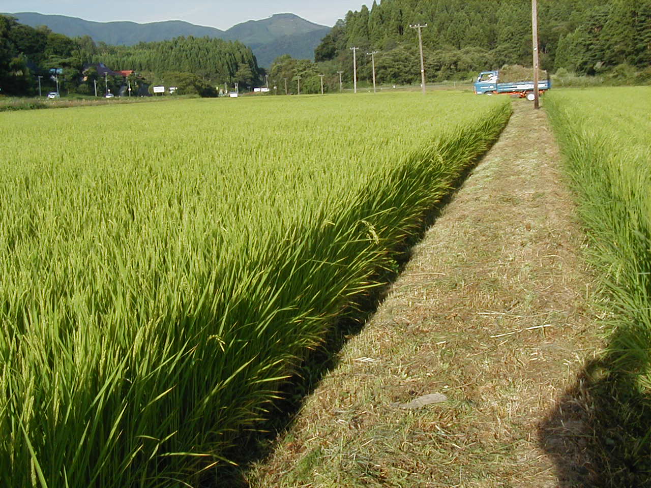 | コシヒカリの田んぼです。 草を刈った後の田んぼは、本当にきれいです。 |