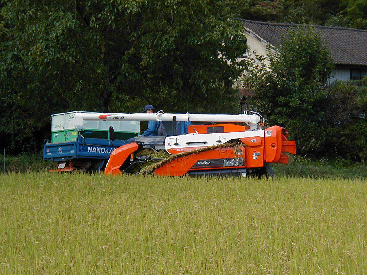 | 今日から稲刈りスタートです。 今年は天候にも恵まれ、質、量ともに、抜群です。 |