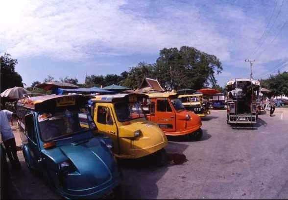 タイ特有の外装が派手な小型オート三輪。今回は、ワット・ポーからバンコクの中心街まで帰ろうと