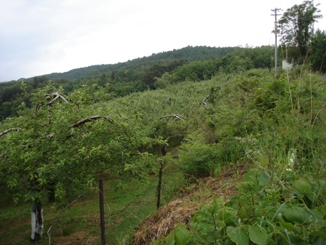 | (滋野)・地図で見ると,丘の上なので,もしかしたら気持ちよい展望の場所なのかな,と思って行ってみました。国土地理院のHPから点の記を プリントして持っていきました。以前畑だったような場所も植林されたカラマツなどの林で,下はヤブになっていて見通しが利きません。 しかし,見当をつけて歩いていくとあまり時間がかからず見つかりました。展望は全くありません。かろうじて北西方向が少し見えました。 丘を下りて,下の田んぼあたりからは,蓼科山から美ヶ原方面がよく見えました。これを選点,埋標,した明治35年当時おそらくここは, 周りに木のほとんど無い,見通しのよい丘の上だったことでしょう。 |