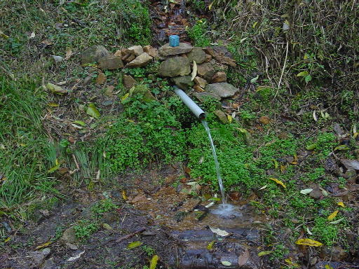| うえだトレッキングナビで見ると,坂城町の林道太郎山線を谷川の方から行き,天神平分岐点から直登するコースが載っていたが,先週の日曜日の午後来た時も登り口がはっきりせず,分岐点から南西に伸びる未舗装の道を行くと,何と虚空蔵山の西へ伸びる尾根上のほんの間近まで車で行けてしまった。 尾根上には,よく整備された登山道があったが,時間もなく,帰ってきてしまった。 今日は,天神平分岐点から,直登してみようと思い,分岐点近くの水飲場の一つ東にある沢状の地形の踏み跡を登ることにする。出発2,20。 |
