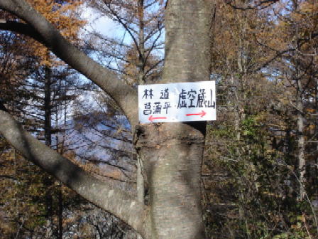 『虚空蔵山(1076m)西側ルート開通のお知らせ』 という通知が、虚空蔵山山頂で登山道の整備をされていた「鳴海友俊」さんから届きました。通知には、三年前の定年退職と同時に着手した、このルートが開通したことと,ぜひ1度登って下さいということが書かれていました。 この虚空蔵山の西側尾根は、ほとんどヤブで,相当な覚悟で登らないと、一人でのんびり登れるという尾根ではありませんでしたが、鳴海さんが三年かけてちゃんとした登山道に整備されました。文には『岩場があり、カヤトの草原があり、適度なアップダウンがあり、とても変化に富んでいる。又、北アルプスの眺望は筆舌に尽くしがたく、幾度登ってもいい山というのが実感だ。 不人気の事由は一にも二にも登山道の未整備にある。在職中から退職後の人生では、何とかしてここを整備したいと考えていた。 この山域は、名にしおうバラづる・藤づるのジャングルで想像をはるかに超える樹勢にたじろぎ、何度断念しようとしたことか。 周りの人にもはげまされ、三年間で延べ100日余の山行整備でようやく完成にこぎつけることができた。』とあります。 ・登山口までのアプローチ(上田方面から) 国道18号線を北上し、信号「谷川」を右折。900m先で右折し『黄金橋」を渡ってすぐ左折。老人ホーム「美山園」前を通り、約1,8km先のY字路を右折、約800m先の右側にP3台分。左側に「登山道入口」の標識があります。 ・所要時間上り1時間20分から30分 との事 地図がついていました。 そこで、さっそく登ってみることにしました。写真は行きに車から虚空蔵山を南側から撮ったもので左端の方から右の山頂への尾根が登山コースです。私はもう少し歩きたかったので、写真のほぼ中央左よりの下の上塩尻のお寺の横から登り出し、鉄塔巡視路を通って、登山道入口である菖蒲平付近まで登り、そこからこのコースをあるいてみようと思い出かけました。(2005,11,19) |
