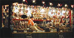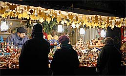 | タクシーとIC(特急鉄道)を乗り継ぎ ニュルンベルグに着くと もう真っ暗でした。 とりあえず宿に荷物を置いて 夜のクリスマス・マーケットに…。 ドレスデンとはまた違った明るい雰囲気の 大規模マーケットです。 |