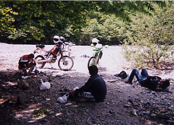だ。飯をたべ この河原で少し遊んで出発。本格的に林道を走る。天気も良く 対