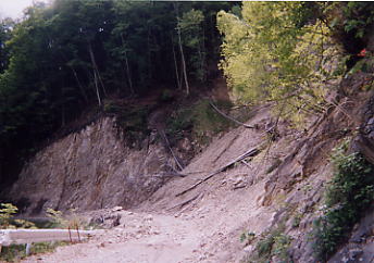 たしかに崖崩れで道が塞がっている。が オフ車なら強引に通行出来る。ここをな
