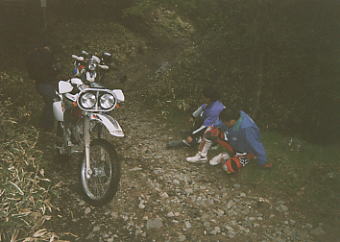 | 見た目以上に荒れている。これが道か? | やっとのことでガレ石ル−トを走破。 |