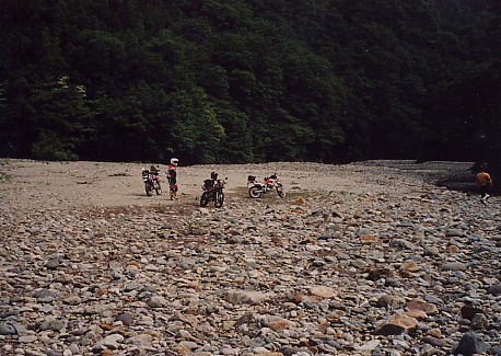 | 毎回降りる広い河原 | 赤倉林道 川沿いを走る林道だ |