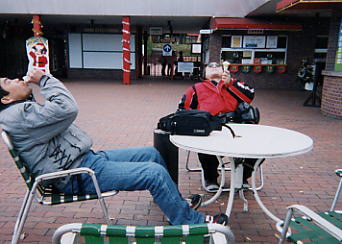 | グリ−ン牧場でソフトクリ−ムを舐める。 | 寒い中で・・・・・・・・・ブルブル。 |