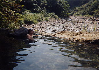 | 先に見えるのが川の露天風呂だ | 雄川閣の露天風呂を堪能 |