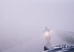 あたりからものすごい霧になる。注意しながら走るが 白根山頂上付近では 視界20m