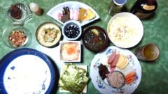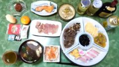 今日の夕食はすき焼き、卵、お節、サラダ、お新香、味噌汁、ご飯、日本茶、ミカン、干し柿、ナッツ、韓国海苔、日本酒。すき焼きは牛肉と豆腐と白滝とネギで、生卵2個につけて熱々をいただいた。お節は数の子と田作りと黒豆と紅白蒲鉾とナルトと卵焼きとコンニャクの煮物とナマスと栗きんとん。サラダはキャベツとレタスとフライドオニオン。お新香は白菜。味噌汁はワカメとアゲとナルト。デザートはミカンと干し柿とナッツと韓国海苔で、お酒は日本酒。朝は2時間程朝寝坊。天気は良いが昨晩降った雪が少しポツリポツリ。車にも雪が少し。予定変更しようかしら?のんびりとTVを見ながら雑煮の朝食。TV等で暇を潰す。早めの昼を食べてから車で