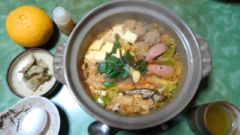 今日の夕食はキムチ鍋、卵、お新香、中華麺、日本茶、最中、マーマレード、乳酸菌飲料。キムチ鍋は肉団子とウインナーと豆腐とモヤシと白菜と大根とキャベツとネギと春雨とニンニクと煮干とキクラゲとヒジキとアゲの辛口で、〆は卵と中華麺。お新香は白菜。デザートとコザサとはマーマレードと乳酸菌飲料。朝、電車が凄い混みよう。どうしたのかしら?帰りも変わらず混雑。もしかして・・・今日から仕事初めも多いと言うこと?いえいえ、学生さんが冬休みを終えたと言う事が正解かな?多分。