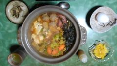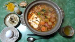 今日の夕食はキムチ鍋、卵、お新香、中華麺、日本茶、ジャム、乳酸菌飲料。キムチ鍋は豆腐と肉団子とウインナーと白菜とモヤシと大根とキャベツと人参とキクラゲとヒジキとニンニクとアゲとジャガイモとネギとワカメと煮干しと春雨の辛口で、〆は中華麺と卵。お新香は白菜。デザートは柚の生ジャムと乳酸菌飲料。職場で探し物。どうしても見つからない。家に帰ってから昨日に続き探す。今日は新しいところを探してみると・・・有りました(^0^)スマホに入れるアプリのマニュアル。これで問題が一つ解決。まだまだ有るので頑張らないと。