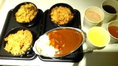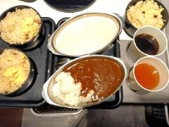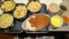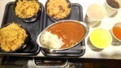 会社の帰りに乗り換え駅で下車して食べ放題。カレーライス×1、炒飯×3、シーフードシチュー×1、オニオンスープ、〆はコーヒー。満腹満腹(^0^)