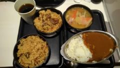 会社の換えに乗り換え駅で下車して食べ放題(^^)カレーライス×1、炒飯×3、シーフードシチュー×1、オニオンスープ、〆はコーヒー。満腹です(^o^)