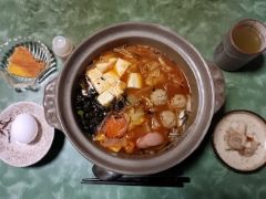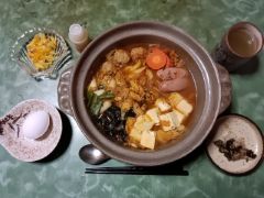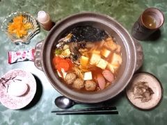 今日の夕食はキムチ鍋、卵、お新香、中華麺、日本茶、ジャム、菓子、乳酸菌飲料。キムチ鍋は肉団子とウインナーと豆腐と白菜とモヤシと大根とキャベツとキクラゲとニンニクとジャガイモと人参とヒジキとワカメとネギの辛口で、〆は卵と中華麺。お新香は白菜。デザートはディズニーの菓子とハッサクのマーマレードと乳酸菌飲料。昼休みにTVを見ていると、衆議院選挙で圧勝した自民党と惨敗の中道をやっていた。自民党さんは過半数を大幅越えなので政策も安定的。元立憲民主党が15%位しか再選出来なかったらしいから・・・大変だ。元公明党さんは全員再選らしいから、上手く公明さんは選挙を切り抜けた感か?野党が無いと、歯止めが心配かな(´`:)