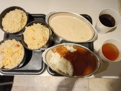 会社の帰りに乗り換え駅で下車して食べ放題。カレーライス×1、炒飯×4、シーフードシチュー×1、オニオンスープ、〆はコーヒー。満腹満腹(´▽`)ノ
