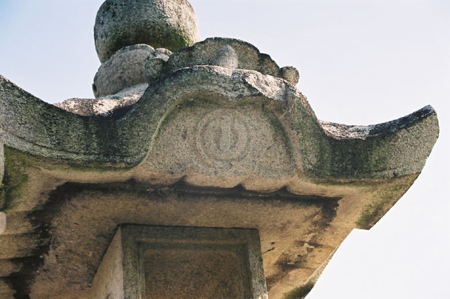 こちらは、燈篭に刻まれた紋。『丸に山』の紋であるが、山の形が面白い。