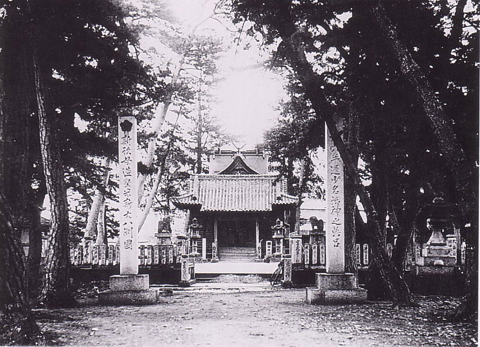 この拝殿は昭和60年に建替えられた。明治時代の写真と比べると、松がほとんどなくなっていることが分かる。