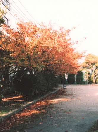 会社の前の、なんの変哲もない小さな公園で、撮りました。紅葉を撮るだけのつもりが、遠くにポツンと見えるベンチがなんとなく気に入ってしまって……。朝の誰もいない公園は清々しい張り詰めた空気があって、心地よいです。静かだけれど、侘しくはなく、