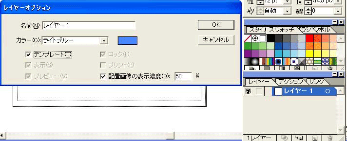 これを、イラレに貼り付け、テンプレートにします。 配置画像の表示濃度を50%ぐらいに設定しておくと操作しやすいと思います。 |