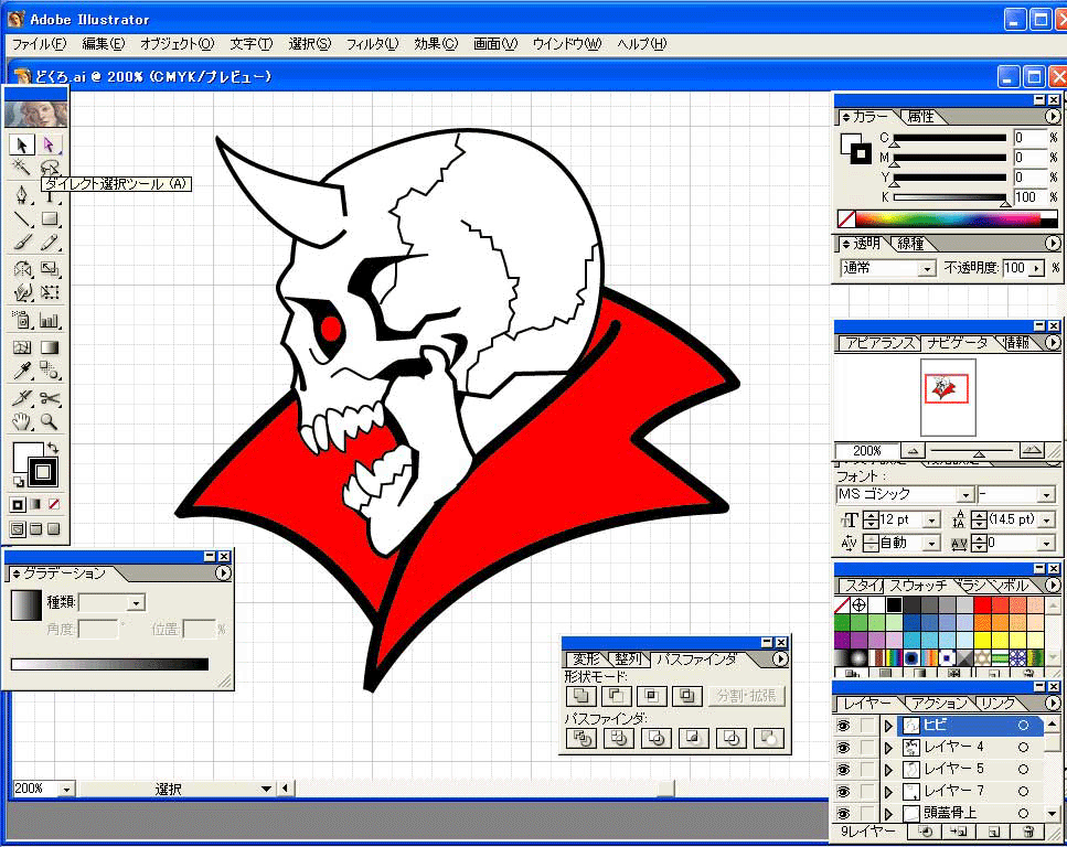 ペンツールを使い作図します。この時、不透明度を50%くらいに設定しておくとテンプレートが透けて見えるので操作が楽です。