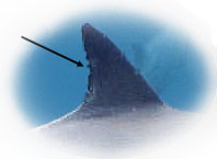 スティングの背びれ スティングの背びれは遠めに見るとギザギザに見えますが、良く見ると、真ん中の一つが尖っていることが分かります。背びれがギザギザのイルカが居たら、スティングかどうか注意して見てみましょう。 |