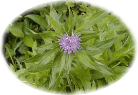 実はアザミというのは総称です。御蔵島のアザミはハチジョウアザミで高さが1.5m程になります。葉の形は刺々しくなく、関東の内地でよく見られるタイアザミとは違うやさしい感じの花です。 |