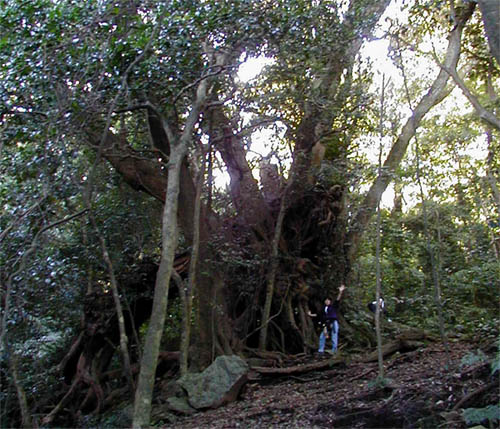 そこには日本で最も大きいシイの木が、その大きな根で、崖の上の土らをごっそりと