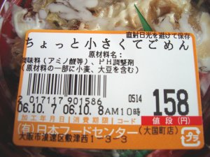 今回も大好評シリーズの「スー玉(スパ玉)」でありますが、いつもの「玉出テク」を拝見しに大国町店に訪れましたところ、テクなブツではないのですが、笑撃の一品を発見しました。 これは一見、普通の「焼鳥丼の小さいサイズ」のように見えますが、よーく商品タグを見てみますと。。。 「ちょっと小さくてごめん」 これには思わず「WWWWWーーーッ!!!」となりまつた。 丼の小さいサイズなど普通にあり得ることなので「焼鳥丼(小)」と書けばいいのdと思うのだけど「ちょっと小さくてごめん」とこんなにも低姿勢かつ親切に説明している商品紹介は見たことがない。 この妙な親切さが玉出の玉出たる所以なのである。 さすが「スー玉」、大阪最強である。 | |