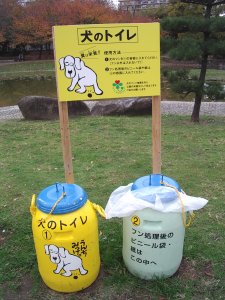 先日、住吉公園を歩いていると、公園の真ん中に2種類のゴミ箱と共にこんな看板が。 犬のトイレ えっ、これがトイレ? 人ならともかく、犬には「この中でウンチしなさいね〜」なんて命令してもできないよなぁ、と思いながら注意書きを読んでみると、犬の糞は肥料にするとかで、ブツとそれを入れていたビニール袋は別々のゴミ箱に入れてくれ、ということらしい。 このエコな発送は大いに理解できる。 でも、こんな開けっぴろげな公園のど真ん中に置いてあるのは、かなりインパクトがある。。。趣味が趣味の御方なら、 「さぁ、この中へ存分に出しなさい」 と優しく命令し、それを悦んで実行する『ド』がつく紳士淑女もおられることだろう。 うーむむ、世も末だなぁ。 (って、オレの想像の方が末期的か・・・。) | |