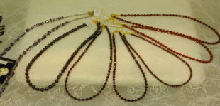 左は季節・年代を問わず人気のあるガーネットのネックレス。 右は人気定番商品のインドガラスビーズを使ったY字ネックレスです。