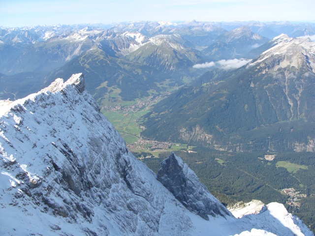 チロル側も、ふもとの村が見えましたよ。ツークシュピッツェって、オーストリア側からも登ってこれるんですよね。