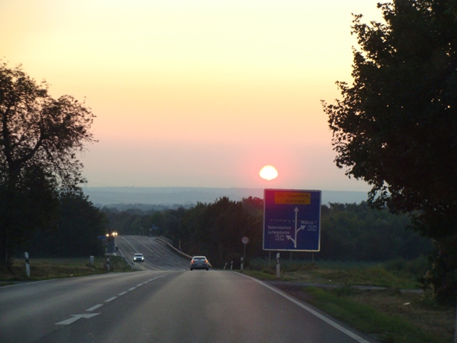 Wörrstadtのホテルを出て、これから高速道路に入るところで、ちょうど日の出を見ることができました。(^o^)