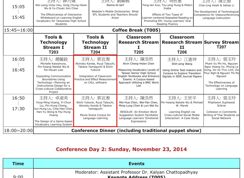 ミント音声教育研究所は、13th AsiaCALL International Conference; Taiwan, (第13回 アジアコール国際大会; 台湾)において、2つの研究発表をおこなった。
