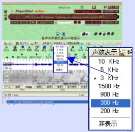 従来の周波数解析(spectrogram)表示帯域は0〜3KHzに固定されていた。今回のバージョンアップでは、表示帯域が7つに増えたので、目的に応じて表示帯域が選べるようになった。これで、音声の様子をさらに詳細に分析できるようになった。