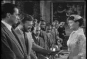 以下は、映画 Roman Holiday(ローマの休日)より選んだ場面である。正体を明かした王女アンが新聞記者のジョーに、公衆の面前で別れを告げる記者会見での出来事。挨拶をすませ、異例にも下段して 握手をして回るアン王女に、同僚記者のアーヴィンが「May I present Your Highness」(贈り物してもいいですか、殿下)と申し出て記念の写真を送る場面である。
