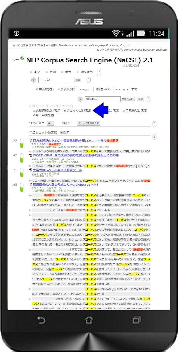 チェックされた語句は絞込み欄に自動的に入力される。ここでは「機械翻訳」を選んだ。