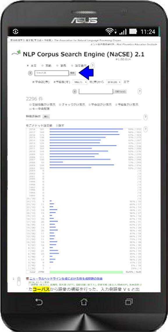 5. スクロールすると、棒グラフの下に検索結果が表示されている。