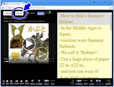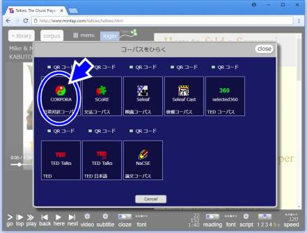 - 文法コーパス、TED コーパスなどは、Talkies のスライダでひらく