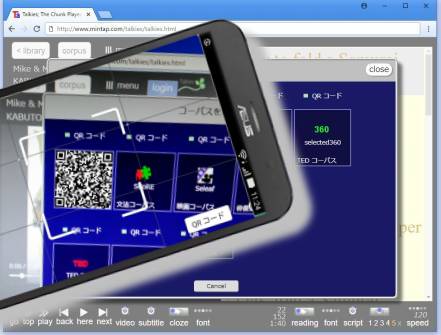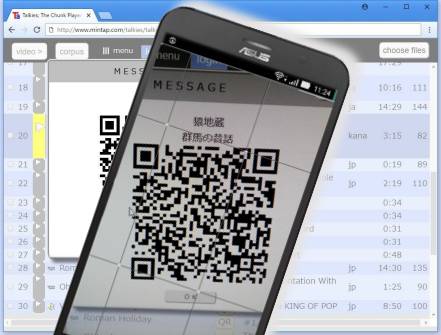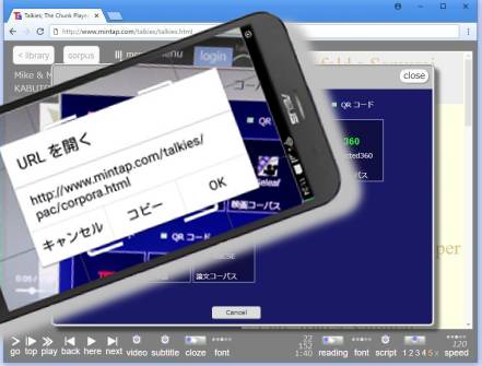 QRコードを使うと、別の端末でコーパスを手軽に開けるようになる。