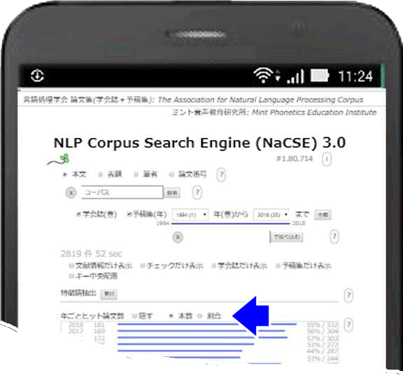例えば 「 コーパス 」 で検索すると単年でも150件ほど、全体では3000件近くヒットする。これだけの分量だとスキャンするだけでも大変な作業だ。そこで絞り込む工夫が必要となる。