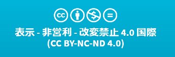 - 注: このページのリンクをたどると CC BY-NC-ND 3.0 が案内される。しかし、別のページの案内では CC BY-NC-ND 4.0 にリンクされている。3.0 と 4.0 の違いについてはここでは触れない。