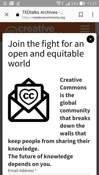 ⇒TEDxNYED などと CCライセンスこのページをひらくと、いきなり小窓がポップアップし、次の文が目に飛び込んでくる。
