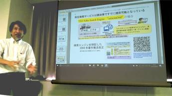 2009年の法改正で 検索エンジンは許諾不要と明記されたことを 文科省の資料を使って説明する田淵