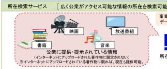 上の図は、来年施行される著作権法改正の目玉である「所在検索サービス」の範囲拡大を説明したものである。検索対象をこれまではネット上にある著作物に限っていたが、まだネット上にない書籍や映像も、ネットから検索可能にすることが可能になることを示している。