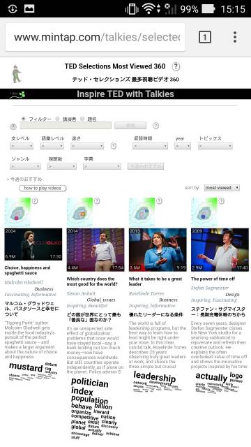 これまでの検索サイトとの大きな違いは TED Talks 専用検索サイトであることだ。これまでのサイトを 汎用サイトと言うならば こちらは 専門サイトと言うことができる。あるいは、汎用サイトで TED Talks を検索した結果が、オープニングになっているとも言える。